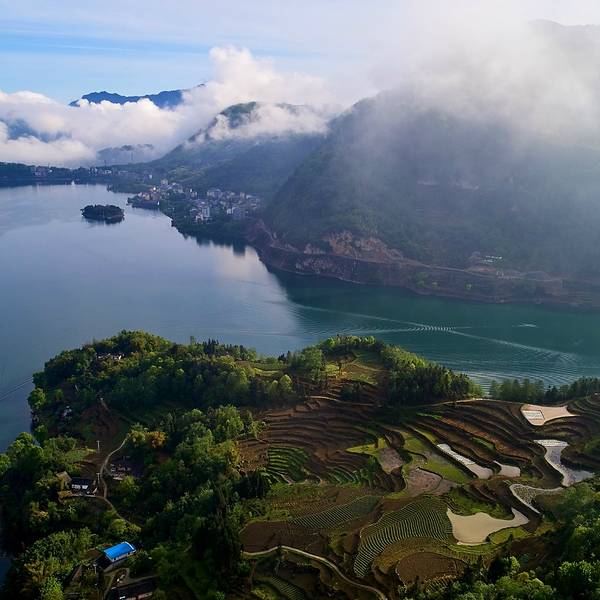 蒙蒙细雨离雷波,马湖水秀云雾多,黄琅三海胜仙境,三和台上忆诸葛。雷波风光:县城及旁边的落水湖蒙蒙细雨离雷波,马湖水秀云雾多,黄琅三海胜仙境,三和台上忆诸葛。