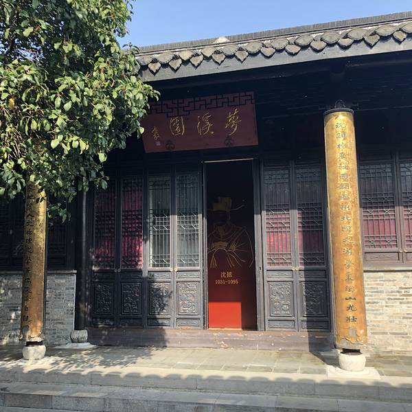 梦溪园是北宋著名科学家沈括晚年居住的地方。他在此写成了科学巨著《梦溪笔谈》。现代研究中国科技史的英国科学家李约瑟博士称誉《梦溪笔谈》为十一世纪的科学坐标。梦溪园古朴典雅,景色幽雅,园里有岸老堂、萧萧堂、壳轩、深斋、远亭、苍峡亭等建筑,还有一条溪水流经园内。整体建筑为清代式样,后幢厅房内有沈括全身座像和文字图片、模型、实物,展现了沈括在天文、地理、数学、化学、物理、生物、地质、医学等方面的科研成就。室内两对抱柱上的对联是沈括一生的高度概括和评价:“沈酣于东海西湖南川北国之游梦里溪山尤壮丽;括囊乎天象地质人文物理之学笔端谈论纵横”。“数卷奇文物志无心匀翠墨;一钧初月南航北驾为苍生”。