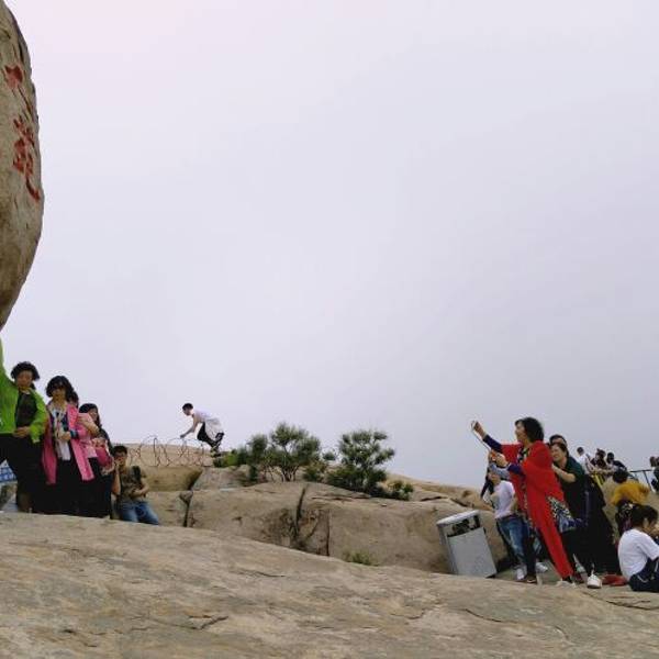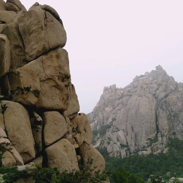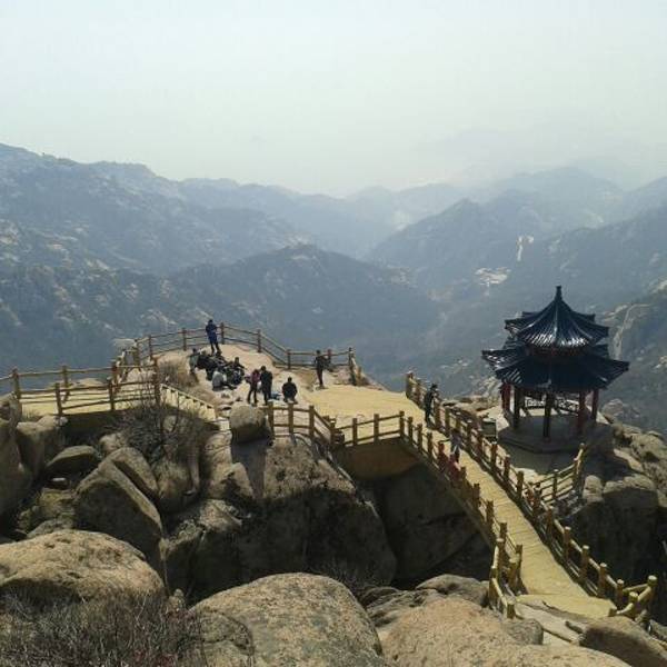 崂山的主峰称“巨峰”,又称“崂顶”。崂山巨峰游览区是以崂山的高峰为主体形成的风景游览区,这里乱石叠嶂,气势恢宏,置身崂顶可以看到碧波万顷的黄海,如珠似玉的海岛,层峦竞雄、万峰争秀的山景;在盛夏季节来此还经常能看到“云海奇观”;而在冬季又可以欣赏到“银峰晶挂”的童话般景象;至于在崂顶观日出,那又是一种美不胜收的迷人画面,因此有了“旭照”。 游玩崂山巨峰游览区主要以爬山为主,而核心景区为一环形,就是说可以不走回头路的绕一圈。建议沿逆时针方向,也就是先往右手边走行,因为景色较为优美,可谓之冠的灵旗峰即在此路始处,如果体力不支或时间不够原路返回的话,也不会有太多遗憾。可走走停停、吃吃拍拍,约5个小时可走完一圈。 从山下购票后需要乘区间车走八公里的山路,之后进入山门。从这里至景区核心的环线区需要步行一段路程,则会看见一处“神龟背负河图、洛书”的巨大雕塑,这是中国远古人类的神话,诉说着中华古老文化的发源都源于河图、洛书。然后一路向上可以看到铁瓦殿旧址,这些高达百米的花岗岩石壁上刻有康熙二年的石刻。 沿途可以看到石刻。过了这处景点就开始了环线。而上灵旗峰有两条路,一条是单行险路,有把手护栏的保护,还是十分安全。此路陡峭,爱冒险者可选择。其次是从巽门右转上行,为一般游客选择的道路。除了登高看海,另一大特色便是奇石。在这里,你可以看到各种形态各异的奇石,如“狗头”状的自然碑。 按逆时针行走的话,在巨峰环线中的一处景点便是灵旗峰,这里南面大海,蓝天白云,可以感受到海上名山。接着便是一线天,在一线天两壁间上方有一硕大的圆形巨石被夹在缝中。过了一线天便能看到——崂山的高峰。它就像一把利剑直刺青天,可沿着由人工开凿的石阶登上瞭望台。从峰顶举目远眺,海光山色,尽收眼底。下了瞭望台向前便会来的牡丹坡,每年四五月份的时候,漫山的杜鹃红花绽放,娇艳似火。然后便是丹炉峰,这是仅次于的大高峰,这里峰顶较平坦,可容数百人,是观日佳处。山峰顶部北侧一组裸岩似“丹炉袅袅”,在山峰上的还有“姊妹石”、“危岩悬殊”等象形山石。 过了丹炉峰向前,在对面的岩壁上刻有两个巨大的双福字,这是模仿书法家王羲之的手法刻就的,字势雄健,十分醒目。为便于游客观赏,沿途还修建了3处观景平台 ,分别是“望福台”、“聚福台”、“得福台”。之后便来到了虔女峰,它座坐北朝,山顶部眼睛、鼻子和口的轮廓非常清晰,就像一位头戴围巾的山村少女,双手合十,面朝北方虔诚地朝拜,姿态是那么端庄、朴实、俊雅,给人一种圣洁虔诚的感觉。之后是五指峰,顾名思义,这5座山峰就像一只伸开了五指的手,直刺青天,这里的风光特色主要是高山和奇峰,秀姿峭拔,庄严雄奇。在这里还可以近距离观赏到“八戒崮”、“龟石”、“子牙出山”、“师徒授法”、“太公崮”等石景,稍远一点距离还有“虔女峰”、“黑风口”、“黄花顶”等景观。 离开五指峰走上一段路便来到了一座悬索桥,这座桥称“风桥险渡”,桥身长百余米,高悬于深深的山谷上,桥下劲风呼呼而过,有惊无险,非常安全。过了风桥险渡边到了环线上的一处景点八卦门,巨峰景区的建设,将《易经》思想与的神奇结合在一起,沿线按照八卦方位设置了八卦门。 需要提醒一下,到五峰仙馆后穿过此馆才是正常的环形游览道,而不是那条水泥马路(此路通往),切记不要走错方向去了别的景区,建议看好指示牌。巨峰景区由于名气相对较小,游客少,没有旅游团大喇叭的叨扰,来此更能享受这山水间的宁静、闲适。