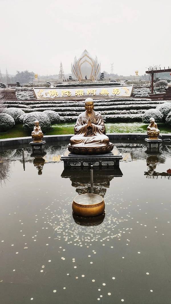 净士宗发源地,中国佛教八大道场之一,寺南翠屏千仞,寺前一泓清流。