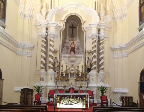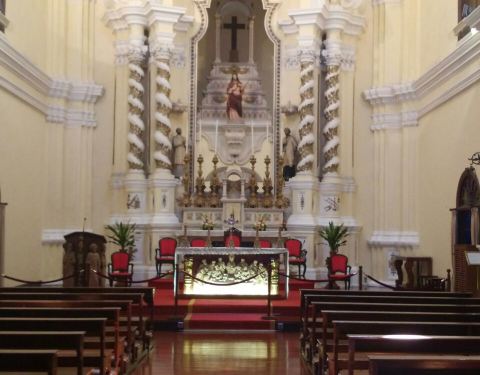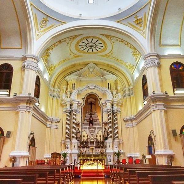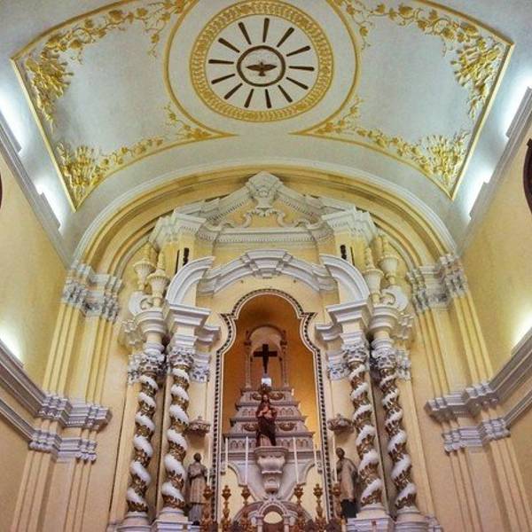 外表看虽然没有玫瑰堂和风顺堂那般惊艳华美,但内里是精美的巴洛克风格穹顶,豪华管风琴,金色螺旋柱...圣若瑟修道院圣堂位于澳门岗顶前地的敎堂,2001年获得联合国教科文组织亚太区文物古蹟保护奖,2005年成为澳门历史城区的一部分被列入世界文化遗产名录内。旁边是何东图书馆,我们去时修道院大门深锁,不得其门而...圣若瑟修道院圣堂位于澳门岗顶前地的敎堂,2001年获得联合国教科文组织亚太区文物古蹟保护奖,2005年成为澳门历史城区的一部分被列入世界文化遗产名录内。旁边是何东图书馆,我们去时修道院大门深锁,不得其门而入,有些可惜。 修院不可以随便进,但圣堂可以进去参观,圣堂是奶油色的外墙,间有白色花纹,也是墨绿色的窗户,外表看虽然没有玫瑰堂和风顺堂那般惊艳华美,但内里是精美的巴洛克风格穹顶,豪华管风琴,金色螺旋柱,吸引不少旅客。 展开