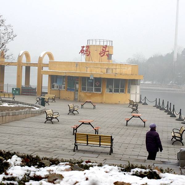 公园里有游船出租,但是感觉船都旧旧的,价格不高,但是因为是冬天,都结冰了,所以没人玩。