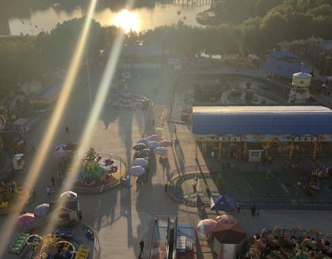 水上公园有游乐设施,收费价格不高,节价日才有人,平时人非常少,我个人比较喜欢水上公园的摩天轮,虽然不是特别大,但是特别漂亮,我们很喜欢在这里拍照片。