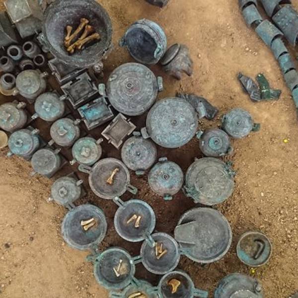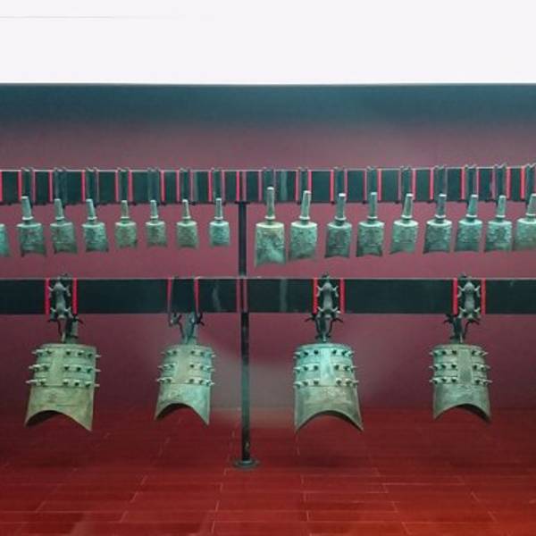 战国早期曾国君主乙的墓葬。位于湖北省随州市西郊擂鼓墩。 1978 年发掘。为岩坑竖穴木椁墓,平面呈多边形,无墓道,南北向,墓坑长 21 米,宽 16.5 米,深 13 米。木椁周围填充木炭,顶上敷 10 ~ 30 厘米的青膏泥。椁内分四室,墓主居最大的东室,漆棺,尸体由多层丝织物包裹。殉人共21 个,各配木棺,均为 13 ~ 25 岁的女性。出土随葬品达 1万余件,有青铜礼器、乐器、车马器、兵器和金器、玉器、木器、漆器、竹简等。单乐器即有钟、磬、鼓、瑟、琴、笙、排箫、篪 8 种。曾侯乙成套编钟多达 65 件,并有 2800 多个铭文,是震惊中外的巨大发现,为先秦音乐史研究提供了珍贵的实物和文字资料。其他如多达6600 字的 240 多支竹简及一件自铭“?鳌钡南涓牵?保存写有 28 宿名称的天文图等都具有重要价值。由青铜器上多次出现“曾侯乙乍(作) (持)”之类铭文,可确认此墓的墓主。又据?D钟铭文推知,曾侯乙下葬的年代当为公元前 433 年或稍晚。