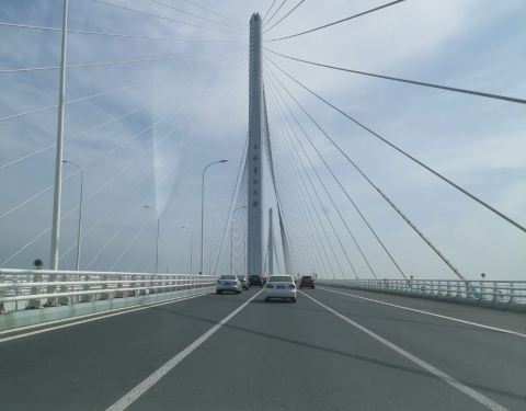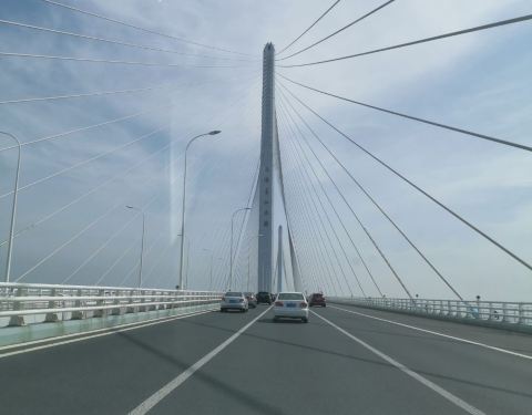 以前想要去崇明岛只能靠摆渡,现在好了有了上海长江大桥,从过江隧道出来就是长江大桥的引桥,跟其他长江大桥一样非常气派,但因为是入海口了宽度要增加很多,非常赞!