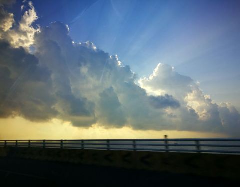 9968米长的跨江大桥 还跨了崇明长兴两岛上海一地 跟南京武汉几个跨江大桥比起来 大概是最长景色最好的长江大桥了 三车道不宽 来回车道间隔空 两边栏杆很低 跟美国那著名的自己不敢开找代驾排队的跨海大桥有点像了...