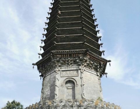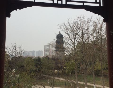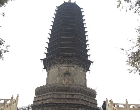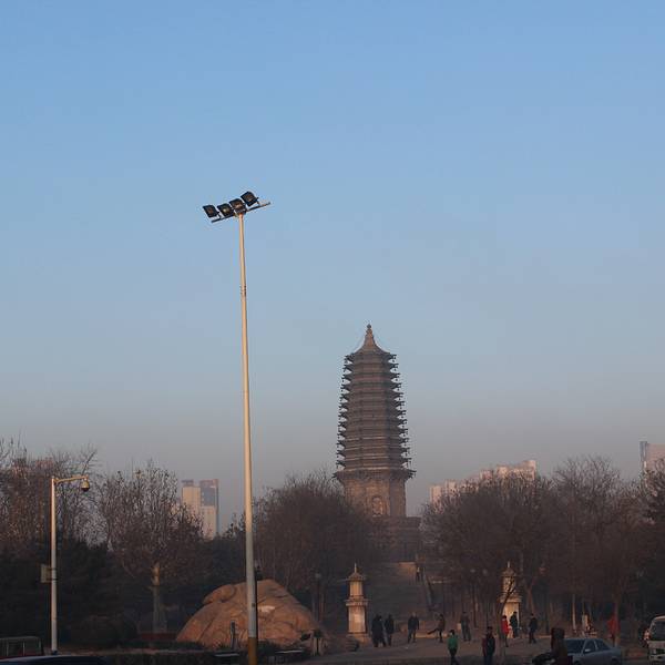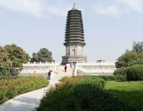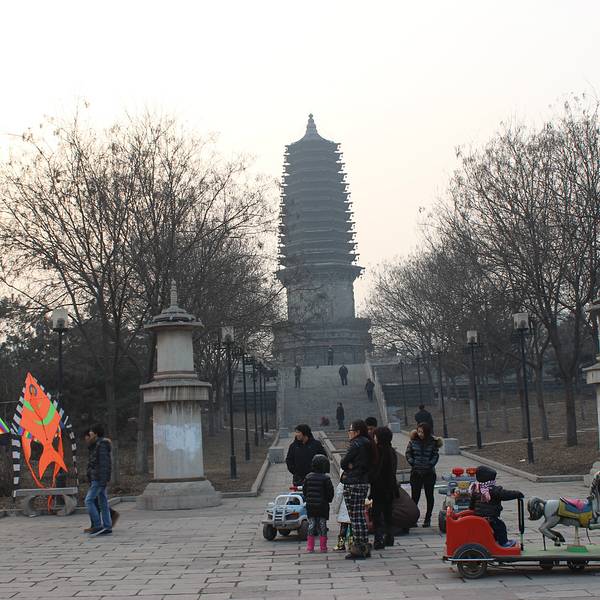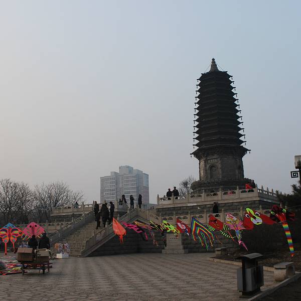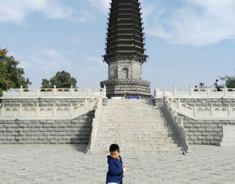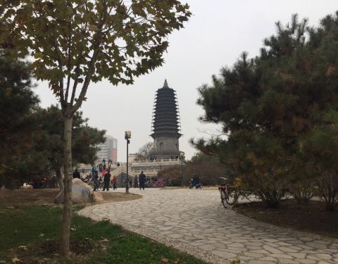 一个不大不小的公园,早起有很多人晨练。据说这有个天宫寺,后修筑塔的,塔在唐山大地震时受损,10年后修复时,发现塔内有两个塔腔,内有5尊佛像和经书等,当地人说以前塔对外开放,塔里特别黑,塔身无门,是从一...