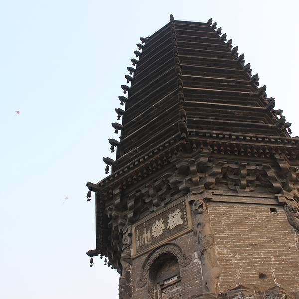 ...辽代的古塔,1987年重建,实心砖塔,造型优美,附近建有公园,当地人在此进行文娱活动,乐在其中