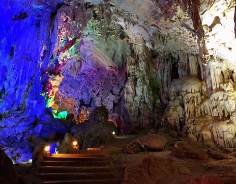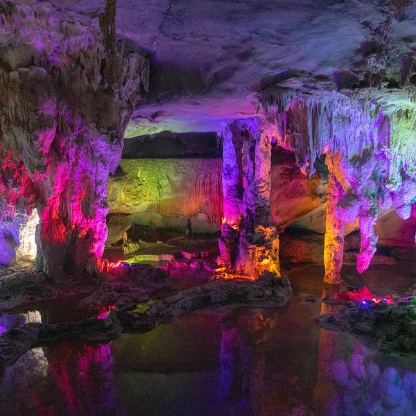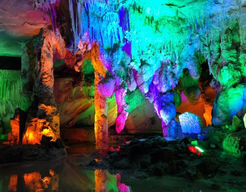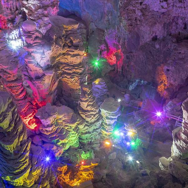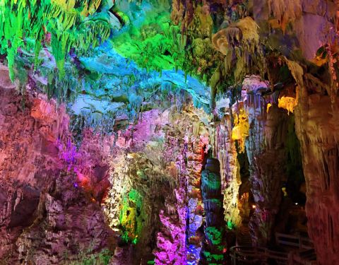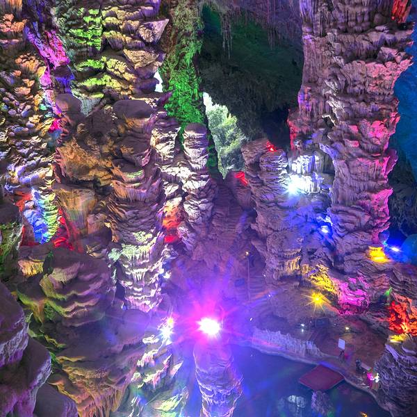 以雄伟壮观著称,被誉为“南国第一洞府”,洞内高度120多米,上下分三层,有凌霄大厅,凌霄宝殿和观景台凌霄岩
