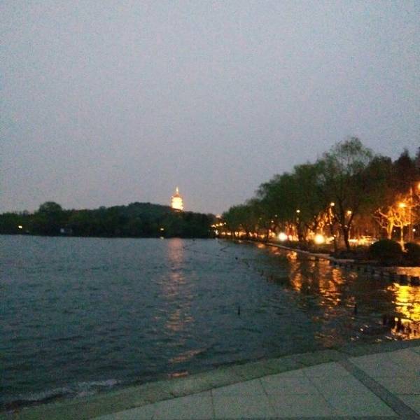 杭州西湖夜景美色,水面如镜一般清晰。