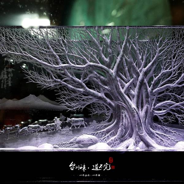 以玻璃为“纸”,用砂轮作“笔”,用一生,做好一件事。置身于此,仿佛漫游于梦幻般的水晶艺术世界。