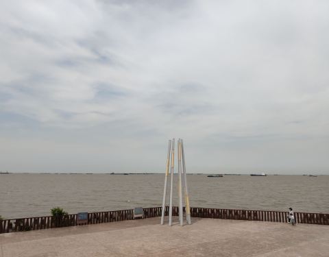 这里是三岔港所在地,江边肯定是一大特色,可以看到这个河口处非常宽阔的江面,吹吹江风也很惬意,特别是租个自行车在江边骑行。但这边是没有江滩的,也不像对面炮台湾那里有那么多蛸蜞。