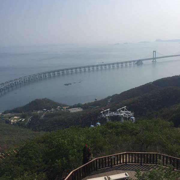 因为星海广场那边在建跨海大桥,部分美景被大桥挡住,视野不够开阔。但是走到海之韵这边,视野绝对开阔。