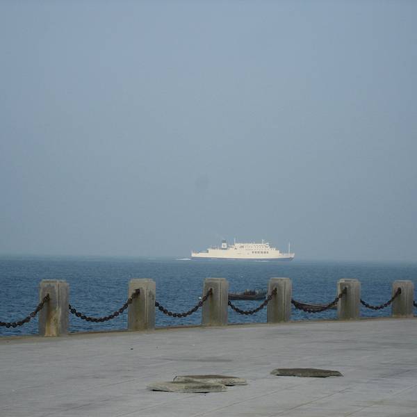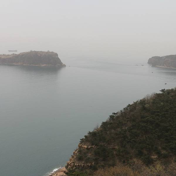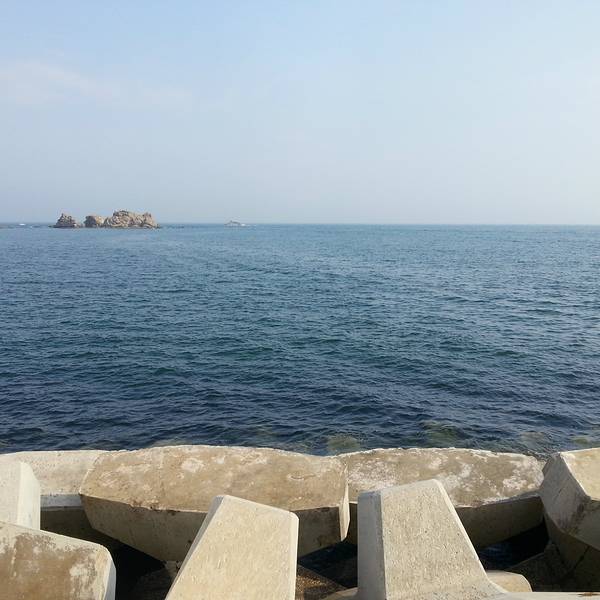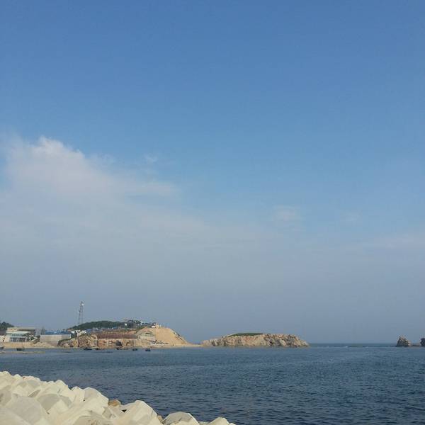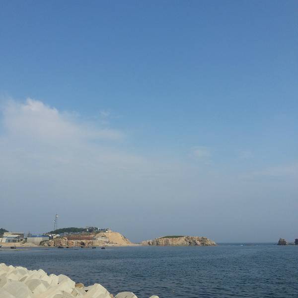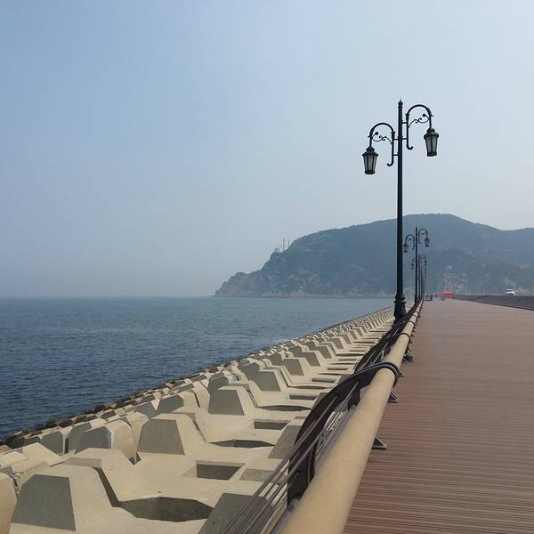 不同于海岛的风光,沿途是石堆码起来的沿岸,更多了一分北方城市的刚性。