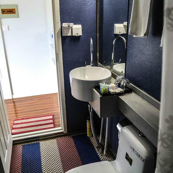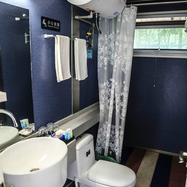 ...的配有花露水,洗手间也很干净,液晶电视,空调应有尽有,还有免费的电瓶车可以往返于住宿和游客中心