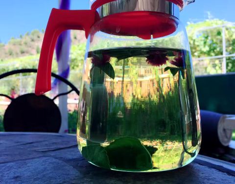 离古北水镇很近,可以放在一起游玩,一早驾车先到香草园,中午再入住水镇正合适。这里是马鞭草的世界,如梦如幻的紫海无边无际地蔓延,在阳光下开得安静又炽烈……千日红和薄荷叶泡的茶,沁人心脾,清凉甜润。