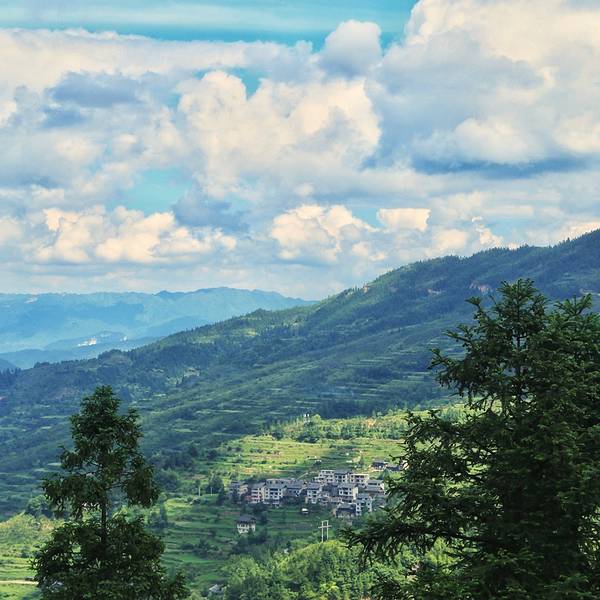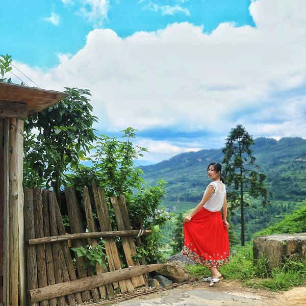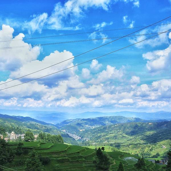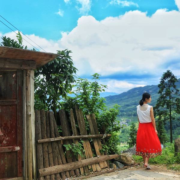 寨子建在山上,山路十八弯的,总感觉下一个弯车子就要掉下去了。一路果真是风光美好,只是同样惊吓不断,之后全程我紧紧拉着窗帘,同时庆幸自己没有逞强步行。下车的一瞬间不禁感叹,真是天高云低,层层叠叠,一眼望去风景独好。上传嗡嗡的时候有旅友问我为什么照片都是背面?