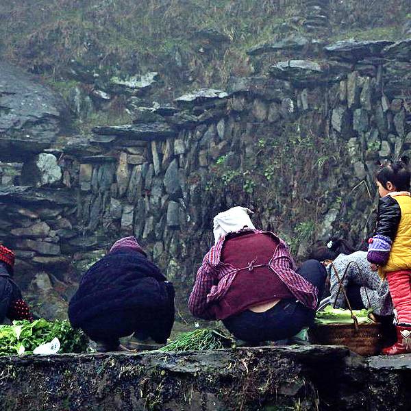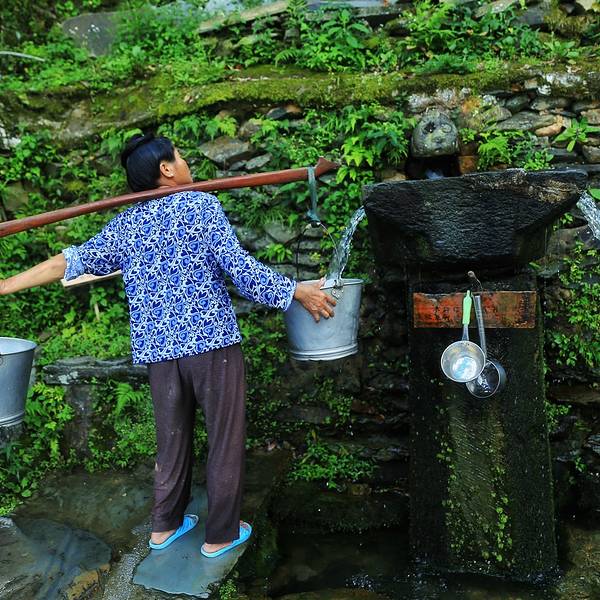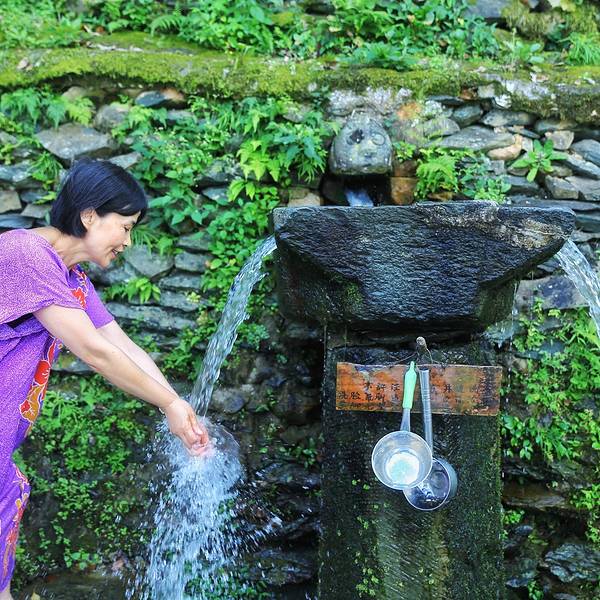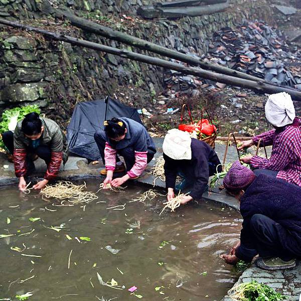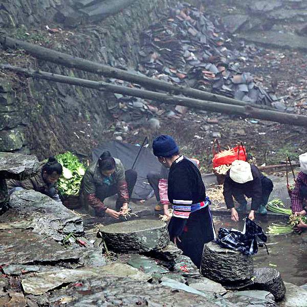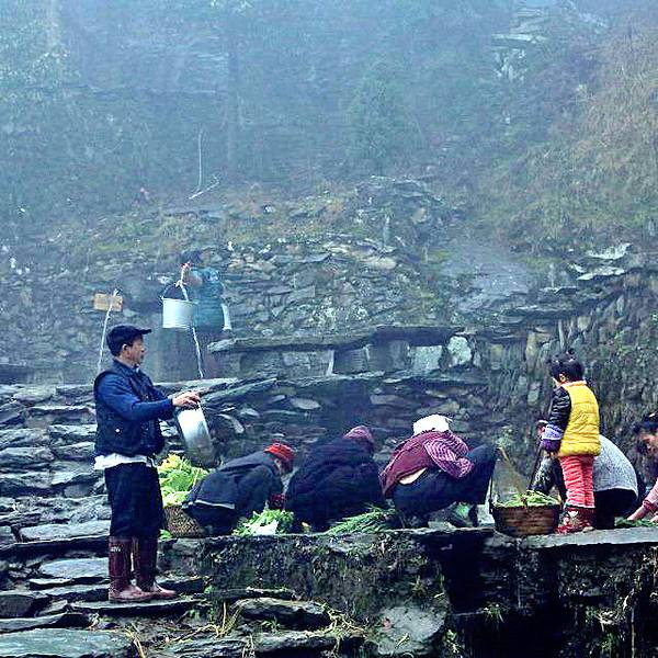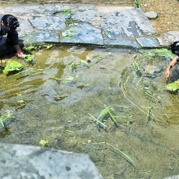 老人们就认真的蹲在池子边洗菜,这水也是无比清澈。据说这股山泉水终年不浑浊,即使前段时间贵州洪涝,它依然清澈,没人知道为什么。