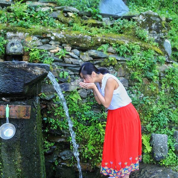 之后这条闪闪发光的红裙子会一直Ending到底。我妈就不是为了什么梯田了,她的目的简单粗暴直接——那股山泉水。为此我们还不远数里带了两个空可乐瓶,所谓吃饱了兜着走。