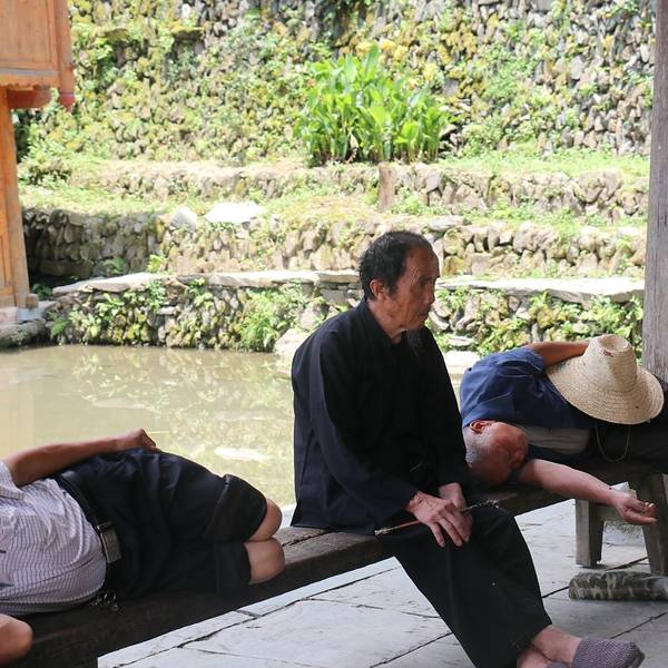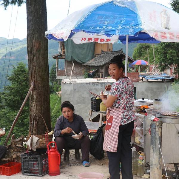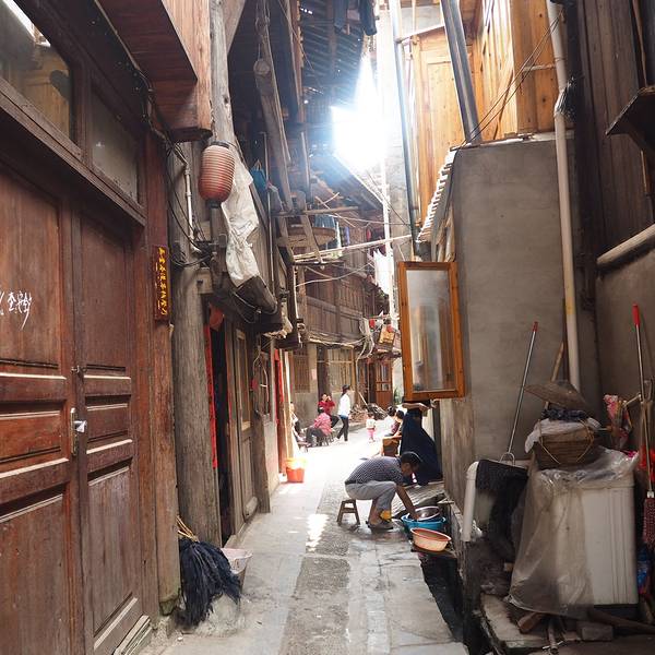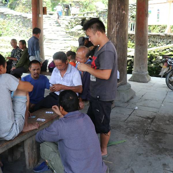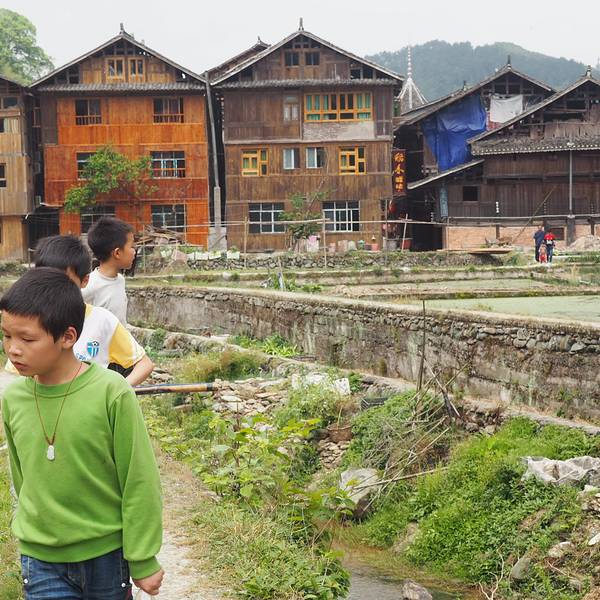 特别是路过肇兴和堂安中间的一个村子厦格的时候,包括堂安侗寨和肇兴侗寨,这里依然过着比较原始的生活,只是厦格更甚。遇见本地的小孩子向他们问路,才发现他们并不会讲普通话,仅大概听懂一些。他们也没有别的娱乐设施,打篮球羽毛球成为了他们生活中寥寥无几的有趣活动,一公里一间的商店也仅是小卖部,经营者小吃和饮料的老人家。年岁较大的老人会在路边阴凉地方用石头下棋;而年轻人都忙着建房子,摒弃了传统的木屋结构;妇女们在河边洗衣服,在家门口喂鸡。大概是很少游客到达这里,我们走过的时候他们都会用奇怪的眼神看我们,就像我们看到“农村淘宝”店时惊奇的眼神哈哈。