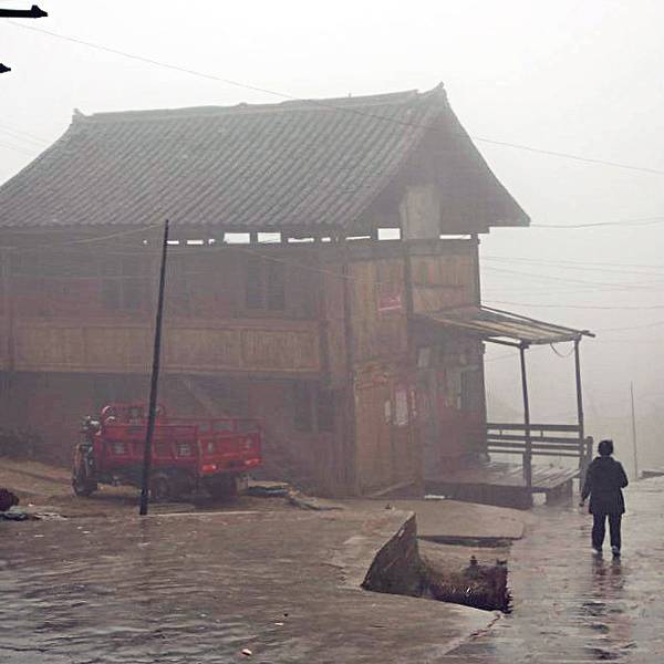 堂安侗寨位于肇兴侗寨后面的海拔千米的大山之上,相隔虽然只有八公里,但是一直是上山路,又无公共交通车,包车的话单程100元,摩的是20元。我们本打算顺着山谷中的田埂小路走上去,虽然辛苦,但既可游览梯田又能节省一半路程,谁料雨一直下个不停,雨中泥泞路又实在难行。正在我们踌躇不前时,正巧遇上一辆路过堂安去平善村的私家面包,一人十元就把我们送进暂时还不收门票的堂安。