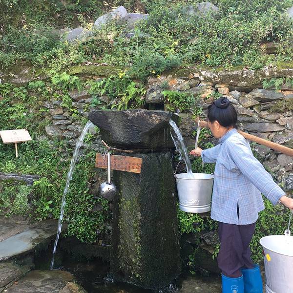 听说这里有一股山泉水,特别清甜,又称长寿水,连肇兴的村民也是一桶一桶挑回去喝,于是她心动了。这里真的比较闭塞,不算一个真正的景点,寨子很小,30分钟逛完,待上1小时也足矣。生活在这里的多数都是当地的老人。印着蓝天,枯草堆也会美成一幅画。一眼就看到了传说中的长寿泉,清澈的泉水咕噜咕噜往外冒。
