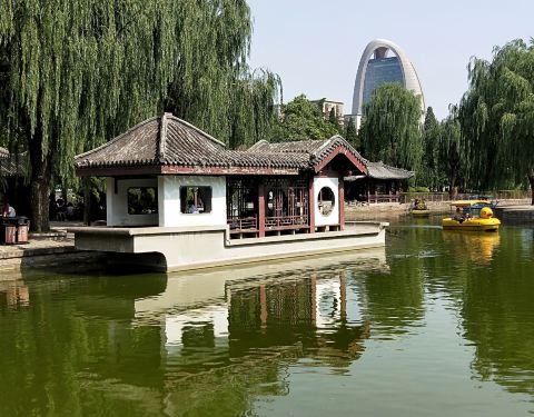 感觉像个人工湖,不过里面有很多人划船的,而且感觉还挺有意思的感觉像个人工湖,不过里面有很多人划船的,而且感觉还挺有意思的。 离三里屯不远,旁边是地铁站,十号线和6号线的换乘站,挺方便的