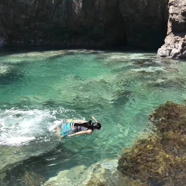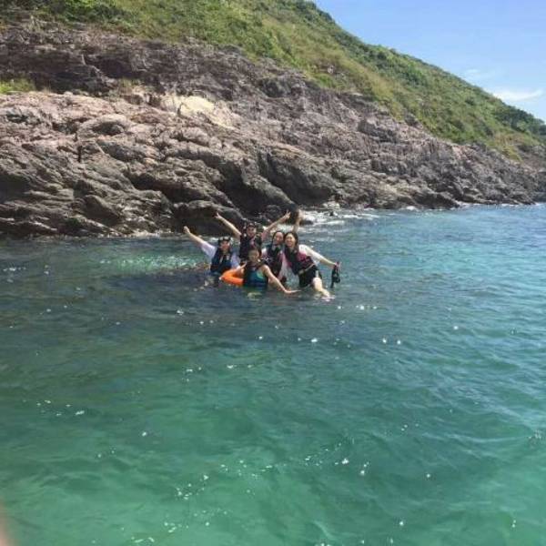 第一次看见清澈的海水很兴奋,所以就下水去游泳了,游出去踩不到底的地方往下看,居然还能看得见自己的脚,不得不说这片海保护得太好了。周末去的,人不多,周边也还有水上项目。不过我们没有去玩,只顾着玩水了。不过太阳太猛烈了,只能游到10点多就不行了,快要被晒熟了。。