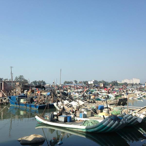 早上在桥头有很多渔民招揽游客坐船出海游玩、捕捞海鲜,出海打渔的船分为三个等级,小船出海两小时100元,次网一般捕不到什么鱼;中船带稍微好一点的拖网,两小时开价250元,可以讲到200左右,大概可以坐十几个人;大船大约是600元两小时,带更大的网。捕到的海鲜全归游客所有,这些海鲜可以带到餐厅加工,按照做法和海鲜多少收费。