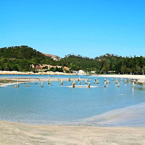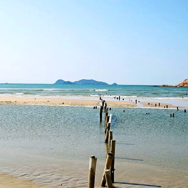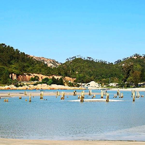 这里三面环海,风景如画。沙滩连绵57公里,雄奇壮观,几乎见不到人为开发的痕迹。沙滩宽约200米。海水清澈见底,海底平坦舒缓,离岸200米,人们还可在海中站立,堪称一绝。洁白的弧形沙滩,沙质幼细,晶莹洁净。摩托车、小汽车在沙滩上行驶犹如海上行车,乐趣无穷。