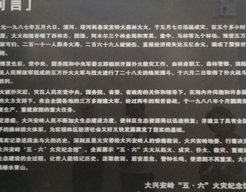真心建议我们在去各个景点旅游的时候,也能多来这种有历史意义的博物馆,感受一下曾经的磨难和沧桑...到了漠河后,我们第一站,是大兴安岭火灾纪念馆。 这个火灾纪念馆,是一个3A级旅游区,是一个博物馆。 1987年5月6日,历史会永远铭记的一天。 因为这天之后的一个月之内的大兴安岭,太悲惨了! 不想多说,上几张...到了漠河后,我们第一站,是大兴安岭火灾纪念馆。 这个火灾纪念馆,是一个3A级旅游区,是一个博物馆。 1987年5月6日,历史会永远铭记的一天。 因为这天之后的一个月之内的大兴安岭,太悲惨了! 不想多说,上几张图,算是博物馆内的冰山一角。 大家自己感受吧。 真心建议我们在去各个景点旅游的时候,也能多来这种有历史意义的博物馆,感受一下曾经的磨难和沧桑,并引以为戒。 展开