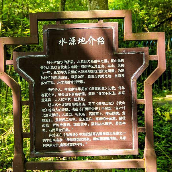 徽州自古人杰地灵,英才辈出,是一块难得的风水佳境。水润万物于无声,滋养着这片土地。都说饮水思源,自驾旅途中,我们参观了无极雪矿泉水科普基地,也是一处AAA景区。传说黄山是轩辕黄帝修身炼丹后飘然成仙的地方,唐朝时将原来的“黟山”更名为黄山,取“黄帝之山”的意思。轩辕黄帝为求长生不老,到处请教炼丹之术。浮丘公说:“炼成金丹,必资山水,山水灵秀,丹药易成。臣尝遍历名山,惟黟山为神仙都会,云凝碧汉,山高林茂,灵泉甘美,能煮石成丹。”于是黄帝命人采集药材,汲丹井无极之水,终于炼成仙丹。传说故事总带着几分神话色彩,所谓的仙丹谁也没试过好不好用,不过水源地的蜀源村却是一座实实在在的长寿村,村里至今保留着乾隆皇帝下旨建造的中国历史上第一座百岁牌坊——贞寿之门。村民普遍长寿想必和独特的水质不无关系。这片水源地是新安江流域的支流范围,属于黄山东南麓原始生态保护区,植被茂密,山泉众多,经过岩层过滤的泉水清透干净,溶入了多种矿物质和微量元素,具有弱碱性和天然磁性。在无极雪矿泉水科普基地,我们看到这里的矿泉水资源得到了开发,铺设了16公里的专用地下管道将矿泉水输送到工厂灌装,建成了全自动矿泉水生产线及参观区,打造了安徽省唯一一家“水文化体验中心”、饶水湖水上乐园、浪漫红户外拓展训练基地,还有矿泉水文化体验中心和配套接待住宿项目正在建设。通过互动形式科普科学健康饮水的知识,将水源地保护和饮水科普、体验研学和拓展训练等结合起来。水是生命之源,在安徽黄山,我们看到了山溪瀑布、小桥流水还有临水而居的古村落,看到了先民对水的理解和利用,也看到了如今对水资源更深入的研究和开发。在领略黄山地区美好山水的同时感受到古人与自然和谐共生的智慧,体验了时代的进步和文化的传承。黄山“水”之旅,收货慢满满,不虚此行。
