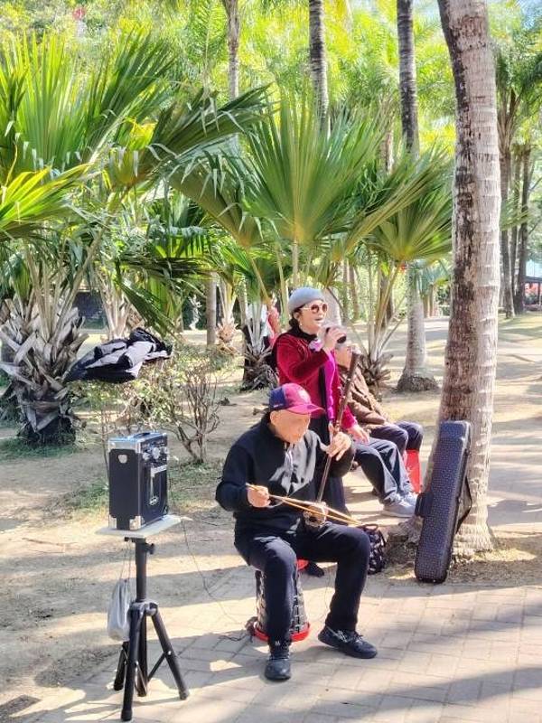 深圳莲花山公园位于福田区,年初二很热闹,人很多,竟然有人在吹拉弹唱,都不过节的。