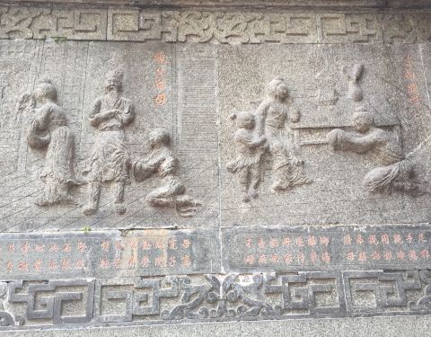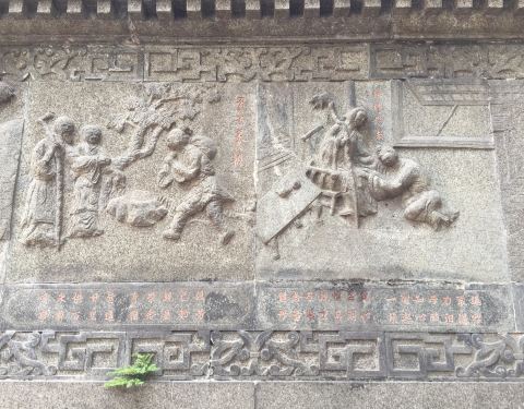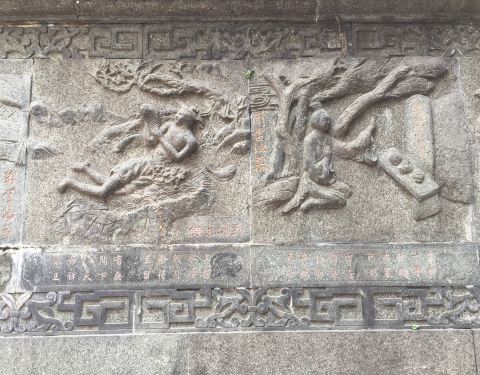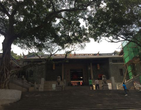 中山纪念堂附近,历史悠久,香火旺盛,正在修缮,墙上有浮雕。