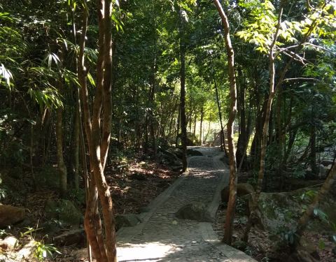 八寨沟是钦州市一处非常富有原生态的自然景观,幽幽竹林、山间小溪、清新空气,这里是天然的氧吧。游玩的适合季节在夏季,那时气温舒适、植被茂密,堪称避暑圣地。不过由于夏季多雨,建议选择大晴天前往游玩。 进入大门后,走过一段水泥路后,可看到白寨沟水车,继续往前经过售票处,沿着道路继续前行,这才算走到景区真正的大门,入口处有景区地图,有卖游泳衣和小食品还有水的摊位。接下来的路全是原始森林的人工栈道,栈道全是沿溪而修建的,可以随时下水玩耍。从这里开始便有两条线路可选,一条是前往瑶池方向的核心景区线路,一条线路是往万寿谷方向。 大多数游客会选择核心景区线路,途中会经过几座小桥,还有一些美丽的水池,可以跳下去玩玩,如果是在雨季,池里的水更为充沛。其实适合下水游玩的地方是将军潭。 在将军潭这里有两种游玩方式:一是下水游玩,如果之前没有买泳衣的话,这里也可以购买,只是款式少,这里有可以换衣服的小木屋。二是继续往前去欣赏瑶池。去瑶池的话请预留游玩时间,这一段游玩时间需要4小时左右。沿途全是原始风貌的热带雨林风光,有奇石和清澈的泉水。 继续前行至红石广场,不会游泳的游客可以在广场上戏水。沿着道路走,路过一颗好运树,可以许愿祈福。走着走着路过一座平安桥,在桥头有处泉眼,泉眼处的水可以直接饮用。一路上有奇石,接下来的南天门也是奇石的聚集地,之后便到达了瑶池,景区内较大的水池,一座人工的水库。