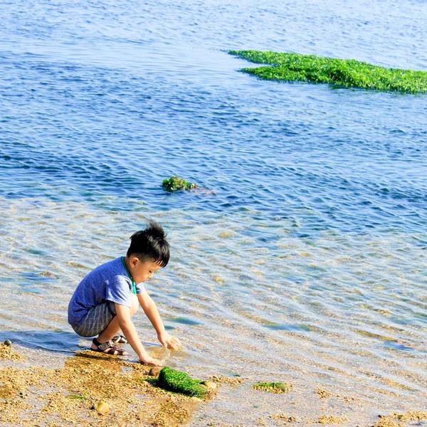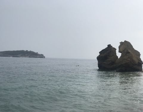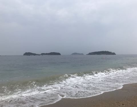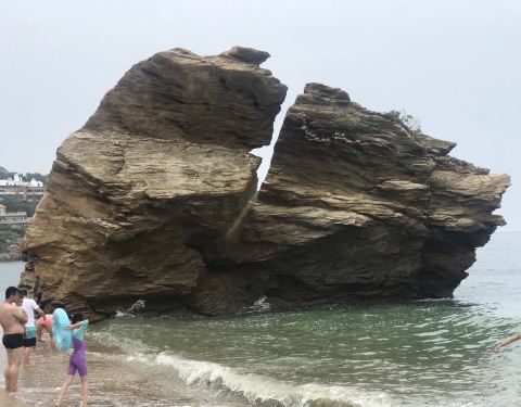 比较适合看细沙的海滩,这里沙滩都是粗石子,来的时候天气不好,下雾!小孩倒是乐意喜欢玩沙,玩水