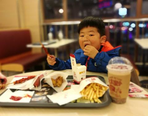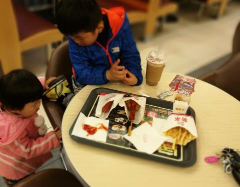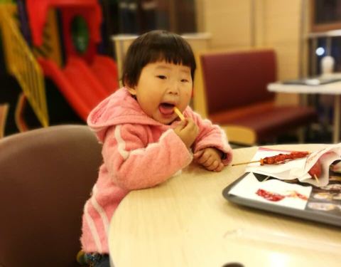 小朋友们吃得很开心,主要离家门口近,他们也爱往里面跑。