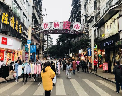 处于市中繁华闹市区,非常热闹,晚上周也夜市小吃很多