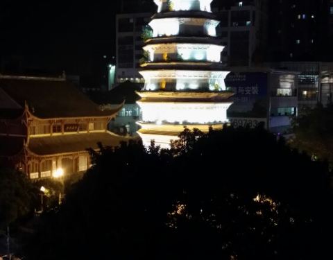 夜晚的报恩塔 另外特色砂锅一份 可以的