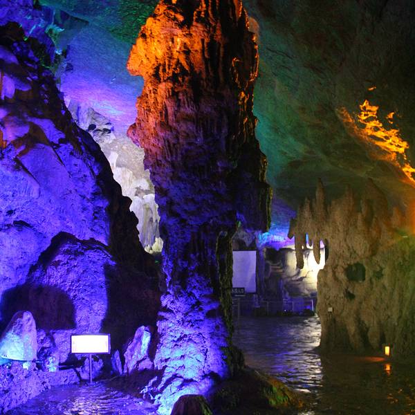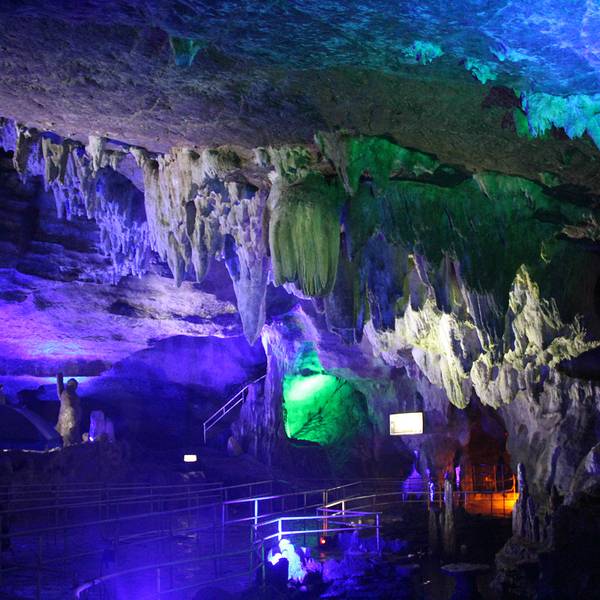 皖南溶洞游首选,自古就有人游览,洞内钟乳石千姿百态。 欣赏洞中黄山,钟乳石群像黄山72峰,还能看到灯光营造出的黄山日出。 坐游船探秘地下暗河很有趣,船只摇摇晃晃,时不时需要低头躲避山岩。