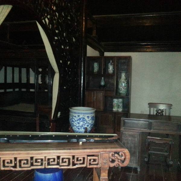 金骆驼 这是主卧室,也是唯一开放参观的房间。主卧之间还有架抚琴,看得出主人也是很有情调的李鸿章故居位于合肥市中心,淮河路步行街上,门票20元,学生证和60岁以上老年人可以半价,徽派建筑,灰色的瓦,白色的墙。有2个大门,门面都不是很大,看不出位高权重的样子,感觉只是个殷实的人家而已,大门上也...李鸿章故居位于合肥市中心,淮河路步行街上,门票20元,学生证和60岁以上老年人可以半价,徽派建筑,灰色的瓦,白色的墙。有2个大门,门面都不是很大,看不出位高权重的样子,感觉只是个殷实的人家而已,大门上也只写着李府,若不是门口的碑文很难想象这是权倾朝野的大官的家。大门的石狮子旁树立着碑文介绍故居的历史,我们看了才知道李鸿章是合肥人,原不姓李,是先祖过继给李姓人家。正厅和入门之间有个假山,不大也不是很精致。正厅前面竖有李鸿章样子的屏风。进了大厅有福寿堂的匾额。大厅之后有一间厢房,但已看不出当年的用途,被当做展览室,主要呈现当年李鸿章办公的样子。大厅之后的厢房也是回字形结构,楼上为卧房。楼梯还保持着当年的木质结构,但接缝处用钢钉牢固。这是主卧室,也是唯一开放参观的房间。房间很长,带有2间卧室,中间是个小客厅,这是其中一张床。。两间卧房之间的小客厅,有点类似现在的起居室。起居室的小饭桌。主卧之间还有架抚琴,看得出主人也是很有情调的。后院的楼顶很高,不知道是不是代表着阶级高。后厢房已经全部改造为展览室,展出李鸿章的官服,当年清朝水兵及荷兰水兵的服装及李鸿章所代表的洋务派的介绍。另一个大门处摆放了一块丝秀的屏风。 展开