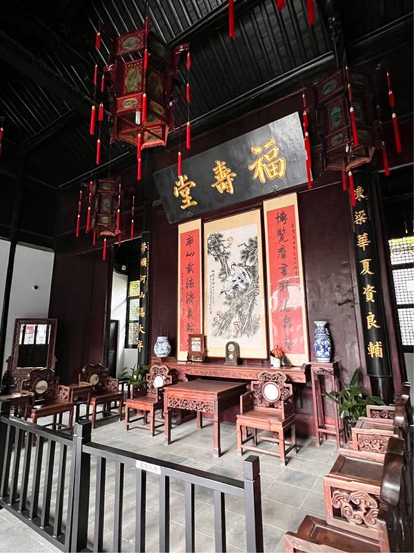 走进中厅的正上方有一块牌匾“福寿堂”,这里是江淮地区现存最大的晚清私人住宅厅堂,以前这里是李府接待亲朋好友的地方。