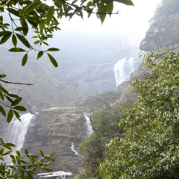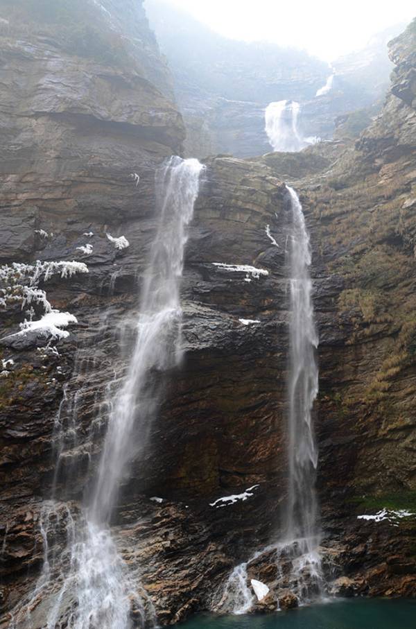 一叠直垂,水从20多米的簸箕背上一倾而下,二叠弯曲。高约50米,“飘者如雪,断者如雾,缀者如旒(旗子上的翼带),挂者如帘”;三叠最长最阔,如洪流倾出,浩浩荡荡,巨响如雷,最后似玉龙直入潭中,激起波涛汹涌,浪花四溅。 展开
