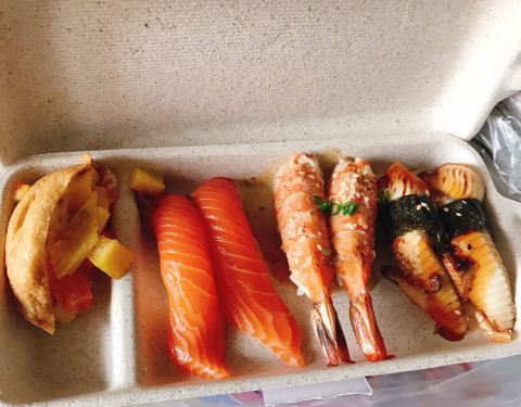 晚上 大麦茶都凉了 寿司饭也不那么好吃的 盘子也不很干净 一般般吧