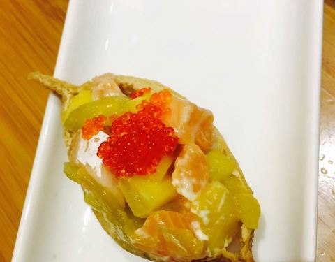 外带,点了火炙三文鱼然后没火炙。芝麻虾和鳗鱼好吃。