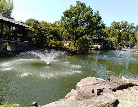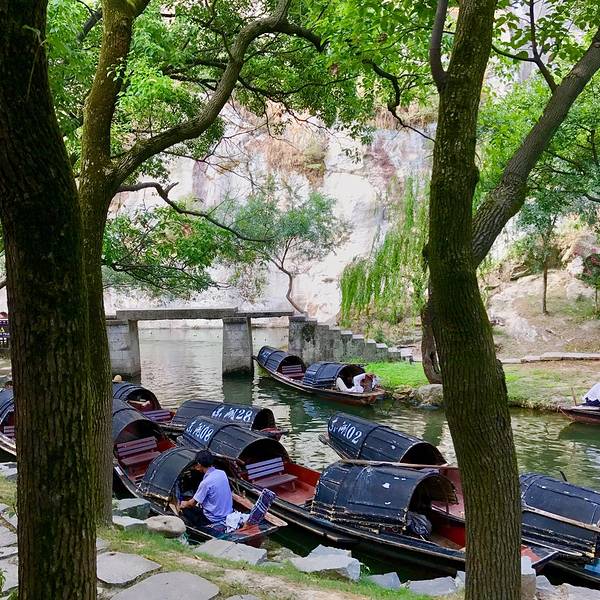 因为一开始惦记着不要钱的雁荡山,所以安排的是绍兴走马观花一日两夜游,我买了157.99元的2日游通票,包括了13+1的景点,算起来还是很划算的,基本省了一半的票价! 第一日的行程安排得十分满档,一大早就起床去东湖! 穿过酒店对面的塔山文化广场,这里满满的绍兴水乡风情!清晨石桩映早梅和鲁迅相关的旧址东湖是8点开门,因为之前看过别人游记把东湖拍的如同街心公园,所以想着速战速决好赶往下一个景点! 一进门,嗯,觉得景色不错,不过还是限于比较漂亮的免费公园级别!绕过小径,过了揽月桥基本就进入景点了,桥上望了一眼,一弯碧水,不禁眼前一亮!桥栏上的白菜花纹好特别!下桥后一拐弯,然后就一幅绝壁蜿蜒展开,映入眼帘,下面绕着的水面上排着若干乌篷船,突然有种景区自动升级vip的感觉!那座小石桥忍不住去走了一个来回!东湖的景区其实就是一狭长的水域背靠着山壁,水域的两头都有乌篷船售票点,85元一条船,最多可以坐三人,包括怀抱的小孩,所以如果一人单独前往还是在售票口找人凑在一起比较划算! 景区分为水线和山线,我按着指示牌先走了山线! 开始有一段水杉林,林子旁有上山的石道,可以居高临下欣赏湖景,可惜暑热期间被封闭了,顺带着连贴着石壁下面的游览道也因为落石风险被封闭了! 林子旁边还有石壁观赏区,靠着围栏可以一观这千年采石场留下的鬼斧神工,石头纹路被斧劈刀凿后大开大合,揉合着诸般色彩,变换莫测犹如一幅酣畅淋漓的草书!旁边有一处小山丘,遍植竹林,内中还有个小亭,趁着天光正好,我上去游览了一番。 光线从竹林缝隙倾洒,身处其间,神清气爽,万物悠然,突然领会到什么叫做不可居无竹!从石桥下望到了陶社!这里为了纪念民国烈士陶成章,将原东湖通艺学堂改作烈士祠,名为陶社。这里建议,先沿着石道走一遍景区慢慢欣赏水边和山岸的景色,再坐乌篷船回头比较能充分欣赏东湖美! 刚才说东湖其实就是古代的采石场!东湖所在地,原为一座青石山,秦始皇东巡时曾在此驻驾饮马,故被称为箬篑山。汉代以后,箬篑山成了绍兴的一处石料场,经过千百年的凿穿斧削,又是采用特殊的取石方法,搬走了半座青山,并形成了高达50多米的悬崖峭壁。取石还普遍深入到地下20多米,有的甚至四五十米处,日子一久,形成了长过200米,宽约80米的清水塘。清末,绍兴著名乡贤陶浚宣眼光独到,利用采石场筑起围墙,对水面稍加拓宽,遂成山水相映的东湖。 原本以为人工开凿的景点难以和自然形成的鬼斧神工媲美,可是看到嶙峋的绝壁在眼前徐徐展开,再配上碧绿的湖水,简直是一副山水长卷,而且移步换景,美不胜收!青山绿水当有桥,东湖上有好几座桥都各有特色! 第一座是秦桥,因始皇在此喂马得名,南北首各构三孔平桥,中间是14级台阶形如满月的拱桥,乌篷船从拱桥下穿梭别有生趣!过得桥来,对面是半城书屋,推窗望桥,低头看书,临水品茶感觉不错。窗子里都是景!继续往前走,可以看到另一座桥,名字很美 霞川桥! 霞川桥是板墩板桥式样,两条桥墩把湖水分隔成三段,倒影映出个川字,背靠青绿山水,浑然天成!走到另一端尽头,回头望,山水通透!这一段除了乌篷船码头,还有几个亭子,配合山水成了绝佳的园林景观!最妙的是这里还有个社戏戏台,演出时间表如下我凭亭望了一阵风景,演员就出来了,清悦的嗓音在湖面上飘扬开来! 鲁迅先生妙笔下的情景已经跃然于水面上! 往回走就可以选择坐船了,这样可以近距离地观赏绝壁风情!喇叭洞,上小下大,酷似喇叭,因为地理结构符合声乐原理,所以洞里回音很明显!仙桃洞,只有穿过洞中,才能看到和倒影形成的仙桃形象! 这里的绝壁虽然不高,但是经历斧劈石凿又千年风化后,气势凌人!石湾里码着整齐的乌篷船!很多峭壁都直愣愣地插入碧水中,若隐若现!湖水清澈,鱼戏其中!逛完东湖已经是11点,赶紧赶往下一个景点大禹陵。在东湖门口对面的公交车站有坐车到汽车东站再换乘68路就可以直达大禹陵了! 大禹陵位于会稽山下,是传说中大禹的葬地,历史与传说的交织,真伪细节自不必细辩,但是自从始皇帝时代,就已经在这里祭大禹了,所以千年悠悠! 进入景区后建议快步前行,前面都是新近修建的景点,景区里也有乌篷船,75元一条同样可坐三人,一路送到大禹临水祭坛边的岸上,也就是大禹陵的大门口,不过坐过东湖的船后,就没有再尝试的念头了! 湖边的荷花不错,但也该没错过花期!