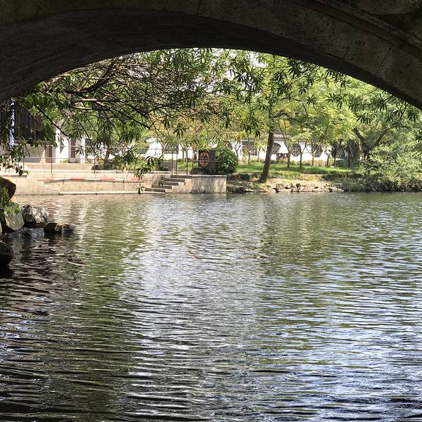 光线从竹林缝隙倾洒,身处其间,神清气爽,万物悠然,突然领会到什么叫做不可居无竹!从石桥下望到了陶社!这里为了纪念民国烈士陶成章,将原东湖通艺学堂改作烈士祠,名为陶社。这里建议,先沿着石道走一遍景区慢慢欣赏水边和山岸的景色,再坐乌篷船回头比较能充分欣赏东湖美!