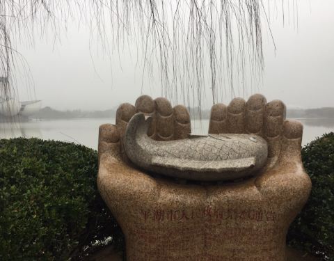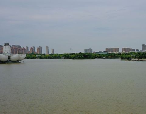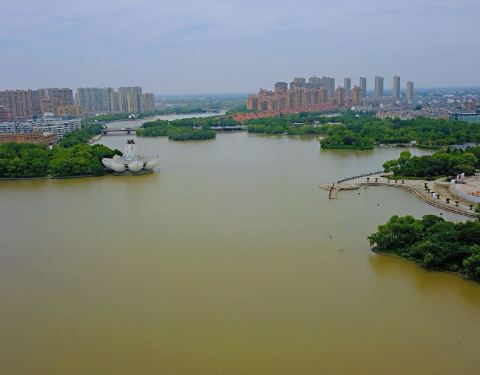 来到平湖东湖,它是由九条河流汇聚而成的,俯瞰给人感觉就像是九龙戏珠一般,非常有意思