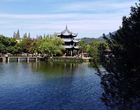 李叔同纪念馆的外形十分别致。 由于下着雨,湖面上烟雨蒙蒙。 天晴时这种感觉就没了。犹如水墨画效果在“老平湖”等位时跑过来转一圈。 李叔同纪念馆的外形十分别致。 由于下着雨,湖面上烟雨蒙蒙。有数只鸟儿飞过,惹人遐思。犹如水墨画效果。 天晴时这种感觉就没了。