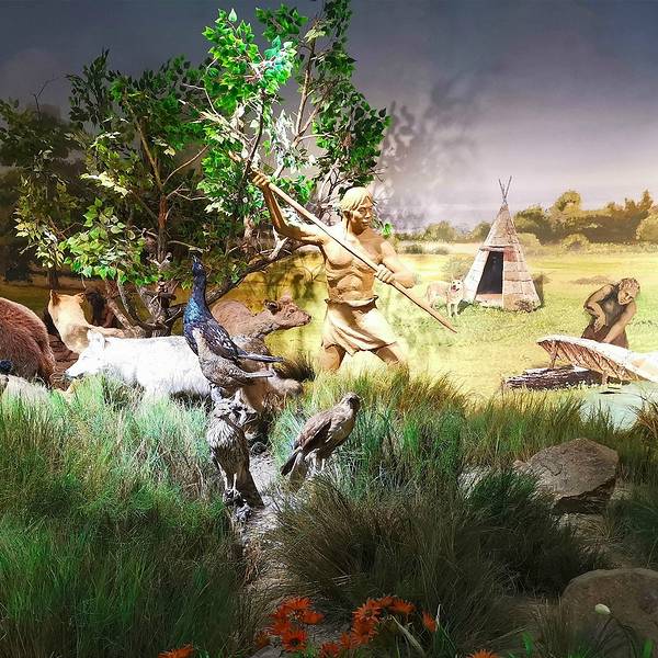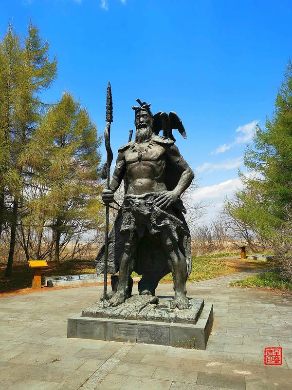 游览兴凯湖、山杏林。肃慎人的渔猎生活肃慎人雕像